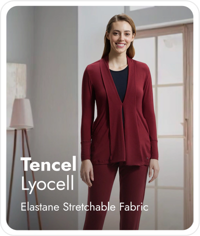 Environment Friendly Lyocell Elastane Stretch Relaxed Fit Full Sleeve Shrug - Cabernet