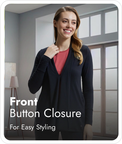 Tencel™ Lyocell Elastane Stretch Fabric | Fabric Composition : Environment Friendly Lyocell Fiber and Elastane | Natural StayFresh Anti-Microbial Properties to Keep You Fresh Throughout the Day | Relaxed Fit | Convenient Side Pockets | Label Free for All Day Comfort | Front Closure with Buttons