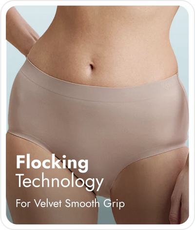 Soft Touch Microfiber Elastane Stretch Fabric | Fabric Composition : Polyamide and Elastane | Full Coverage | No Ride Up Back | No Visible Panty Line | Flocking Technology for Velvet Smooth Grip on Waist and Leg | Label Free for All Day Comfort