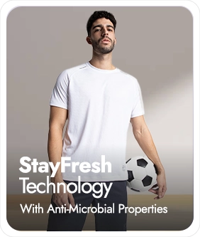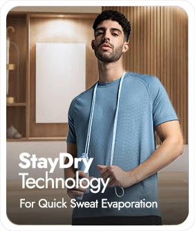 Lightweight Microfiber fabric | Fabric Composition : 100% Micro Polyester | Jockey Air - Lightweight and breathable for unmatched experience and comfort | Smartfabric - Takes Quality and Comfort to the Next Level | StayFresh Treatment with Antimicrobial Properties to Help You Stay Fresh Throughout the Day | StayDry Treatment with Additional Evaporation Properties to Help You Stay Dry Throughout the Day | Breathable Mesh for Enhanced Cooling | Round Neck | Half Sleeve | Label Free for All Day Comfort