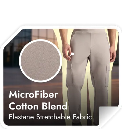 Microfiber Cotton Blend Elastane Stretch Fabric | Fabric Composition: Polyester, Cotton and Elastane | Regular Fit | Cargo Pockets | Convenient Side Pockets | Comfortable Waistband with Inner Drawstrings | Label Free for All Day Comfort