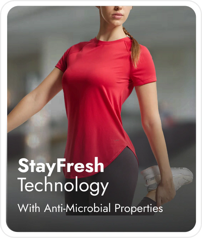 Microfiber Fabric | Fabric Composition : Polyester | StayFresh Treatment with Antimicrobial Properties to Help You Stay Fresh Throughout the Day | StayDry Treatment with Additional Evaporation Properties to Help You Stay Dry Throughout the Day | Smartfabric - Takes Quality and Comfort to the Next Level | Relaxed Fit | Round Neck | Raglan Styling | Key Hole Styling | Curved Hem Styling | Reflective Branding and Loop | Label Free for All Day Comfort