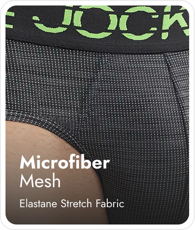 Microfiber Mesh Elastane Stretch Fabric | Fabric Composition : Nylon and Elastane | Breathable Mesh for Enhanced Cooling | Jockey Air - Lightweight and breathable for unmatched experience and comfort | Stayfresh Treatment with Antimicrobial Properties to Help You Stay Fresh Throughout the Day | Staydry Treatment with Additional Evaporation Properties to Help You Stay Dry Throughout the Day | Smartfabric - Takes Quality and Comfort to the Next Level | Lightweight and Breathable for Unmatched Experience and Comfort | Engineered to Prevent Ride Up | Ultrasoft and Durable Waistband | Label Free for All Day Comfort