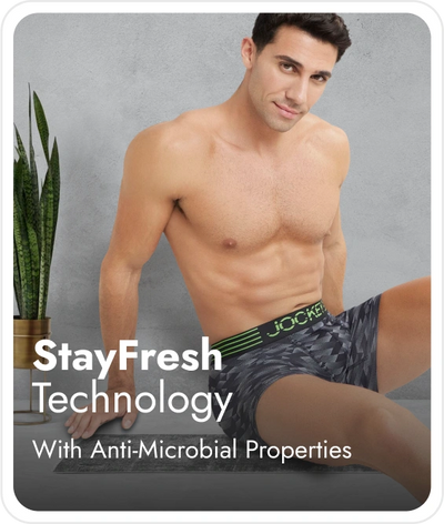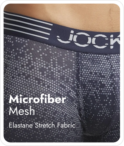 Microfiber Mesh Elastane Stretch Printed Fabric | Fabric Composition : Nylon and Elastane | Breathable Mesh for Enhanced Cooling | Jockey Air - Lightweight and breathable for unmatched experience and comfort | Stayfresh Treatment with Antimicrobial Properties to Help You Stay Fresh Throughout the Day | Staydry Treatment with Additional Evaporation Properties to Help You Stay Dry Throughout the Day | Smartfabric - Takes Quality and Comfort to the Next Level | Lightweight and Breathable for Unmatched Experience and Comfort | Engineered to Prevent Ride Up | Ultrasoft and Durable Waistband | Label Free for All Day Comfort
