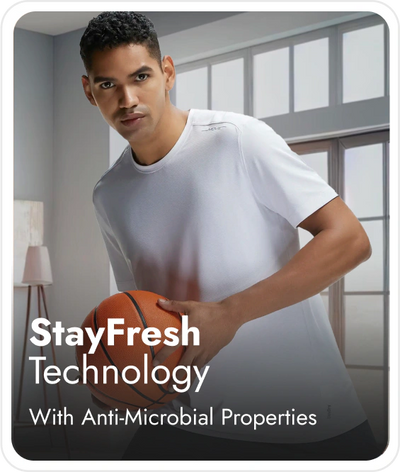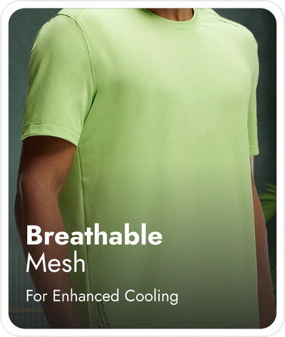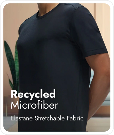 Recycled Microfiber Elastane Stretch Fabric | Fabric Composition : Polyester and Elastane | Breathable Mesh for Enhanced Cooling | Stayfresh Treatment with Antimicrobial Properties to Help You Stay Fresh Throughout the Day | Staydry Treatment with Additional Evaporation Properties to Help You Stay Dry Throughout the Day | Smartfabric - Takes Quality and Comfort to the Next Level | Half Sleeve | Round Neck | Label Free for All Day Comfort