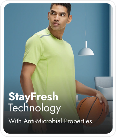 Recycled Microfiber Elastane Stretch Fabric | Fabric Composition : Polyester and Elastane | Breathable Mesh for Enhanced Cooling | Stayfresh Treatment with Antimicrobial Properties to Help You Stay Fresh Throughout the Day | Staydry Treatment with Additional Evaporation Properties to Help You Stay Dry Throughout the Day | Smartfabric - Takes Quality and Comfort to the Next Level | Label Free for All Day Comfort
