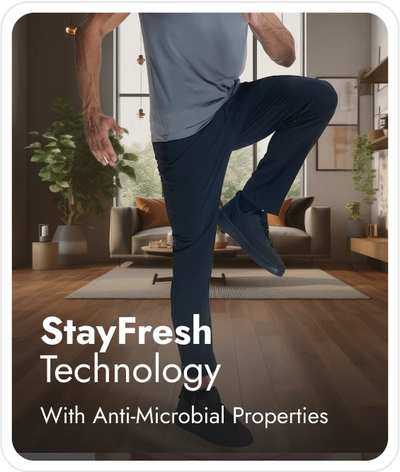 Recycled Microfiber Elastane Stretch Fabric | Fabric Composition : Polyester and Elastane | Environment Friendly Recycled Microfiber | Stayfresh Treatment with Antimicrobial Properties to Help You Stay Fresh Throughout the Day | Staydry Treatment with Additional Evaporation Properties to Help You Stay Dry Throughout the Day | Smartfabric - Takes Quality and Comfort to the Next Level | Slim Fit | Convenient Zipper Pockets | Comfortable Waistband with Drawstrings | Label Free for All Day Comfort