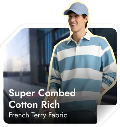 Super Combed Cotton Rich French Terry Fabric | Fabric Composition: Cotton and Polyester | Polo Neck | Full Sleeves | Ribbed Cuffs | Label Free For All Day Comfort