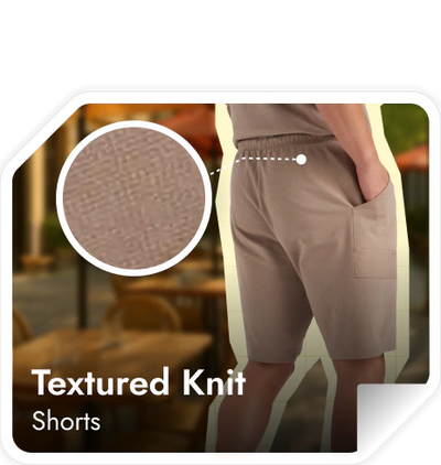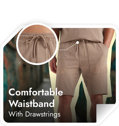 100% Super Combed Cotton Fabric | Fabric Composition : Cotton | Textured Knit Shorts | Convenient Side Pockets | Comfortable waistband with drawstrings