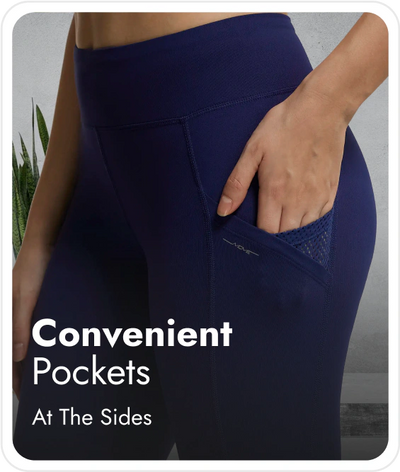 Tactel Microfiber Elastane Stretch Performance Leggings with Broadwaistband & Side Pockets - Midnight Sail