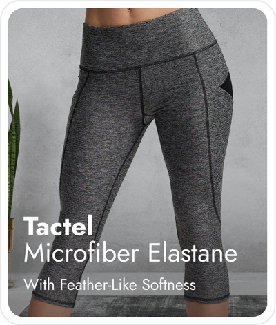 Tactel Microfiber Elastane Stretch Slim Fit Capri with Side Pockets - Black Melange
