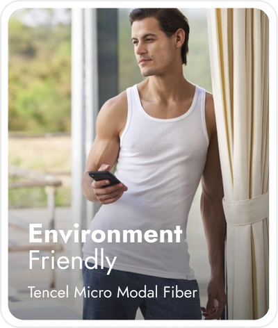 Tencel™ Micro Modal Cotton Rib Fabric | Fabric Composition : Environment Friendly Micro Modal Fiber and Cotton | Extended Length for Easy Tuck in | Sleeveless | Round Neck | Label Free for All Day Comfort