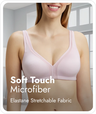 Soft Touch Microfiber Elastane Stretch Fabric | Fabric Composition : Nylon and Elastane | Full Coverage Bra | Wirefree and Non-Padded | Broader Cushioned Fabric Strap at Front for Added Comfort | Plush Lining Cup | Stylised Mesh Panel | Plush Lining for No Apex Show | Label Free for All Day Comfort | Based on the Size Band Of the Bra, the Number Of Hook and Eye Varies for Better Support
