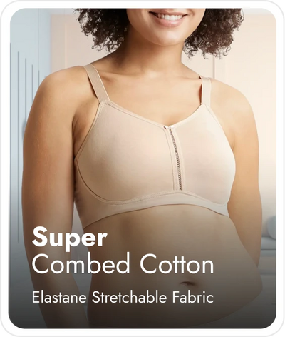 Super Combed Cotton Elastane Stretch Fabric | Fabric Composition : Cotton and Elastane | Full Coverage Bra | Wirefree and Non-Padded | Honeycomb Strap Design for Better Grip and Comfort | Laddered Elastic Styling | Broad Wings to Smoothen Back Curves | Double Layered Laminated Cup for Better Support | Label Free for All Day Comfort | Based on the Size Band Of the Bra, the Number Of Hook and Eye Varies for Better Support